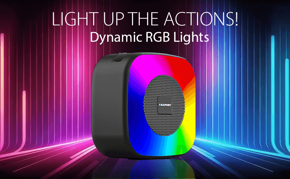 Blaupunkt BT03 RGB , 52 mm speaker produces audio output of 5 watts in crystal-clear detail, covering the high, mid and low frequencies. Its 800 mAh battery offers up to 4 hours of playback time. It has built in Dynamic RGB lights that change colour, Honestly, it looks great when the lights are dimmed and the LEDs are working their magic. Make conference calls in your car, office, bathroom or kitchen using this speaker, thanks to its built-in microphone. You can carry along this compact speaker with you and enjoy music anywhere you want. It can easily fit in your luggage, backpack, bag, etc.