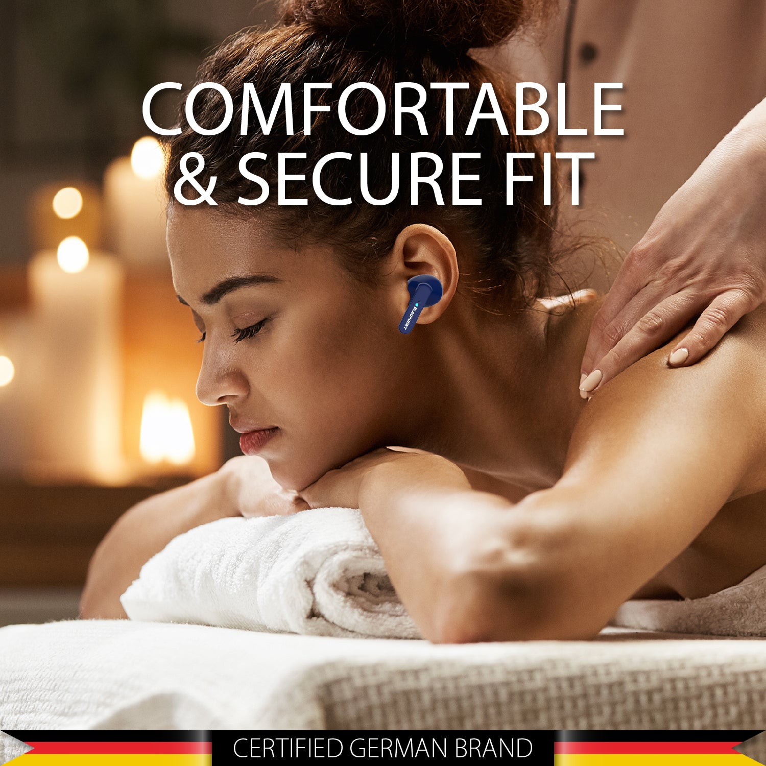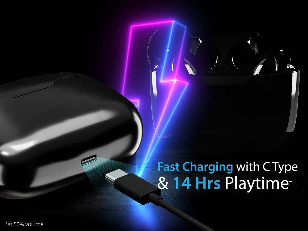 The Germans know all about going the distance with tech. And this is reflected in the battery performance. A single charge gives you 14hrs of playtime. The TurboVolt tech inside results in superfast charging times. A 10mins charge results in 30mins of playtime. And these are figures that are from the real world. The LED display on the case helps reduce battery anxiety too. You will always know the battery status of each bud through the individual display.