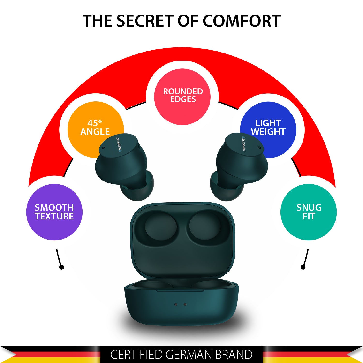 Model Name BTW25 Bass Buds Wireless Earbuds Battery Capacity Earbuds: 2*40 mAh & Charging Case: 300mAh Low Latency 80ms Driver Size Dynamic Driver Voice assistant Siri and Google Assistant Compatibility iPhone, Android Phones, OnePlus Mobiles, Laptop, Smart TV, Macbook, Desktop, All Audio devices supporting Bluetooth A2DP profile Designed & Developed In Germany Imported & Marketed By Envent Worldwide Pvt. Ltd, 105-107, 1st Floor, Tower B-4 l Spaze I-Tech Park, Sec-49, Sohna Road, Gurgaon,Haryana-122018 Customer Care whatsapp support: 8860022600 Email ID: wecare@blaupunktaudio.in Manufaturer Name Zhongshan K-Mate General Electronics Co., Ltd. NO.2, 5TH XINSHENG STREET, GANGKOU TOWN, ZHONGSHAN ZHONGSHAN,China-528477 Packer Address Envent world wide Pvt Ltd C/O Glaucus, Supply chain Solutions Pvt Ltd, KH No. 15/16, Main (1-0) Village Samalkha, Tehsil Vasant Vihar, Delhi-110097 Country of Origin China Approved By Blaupunkt Germany