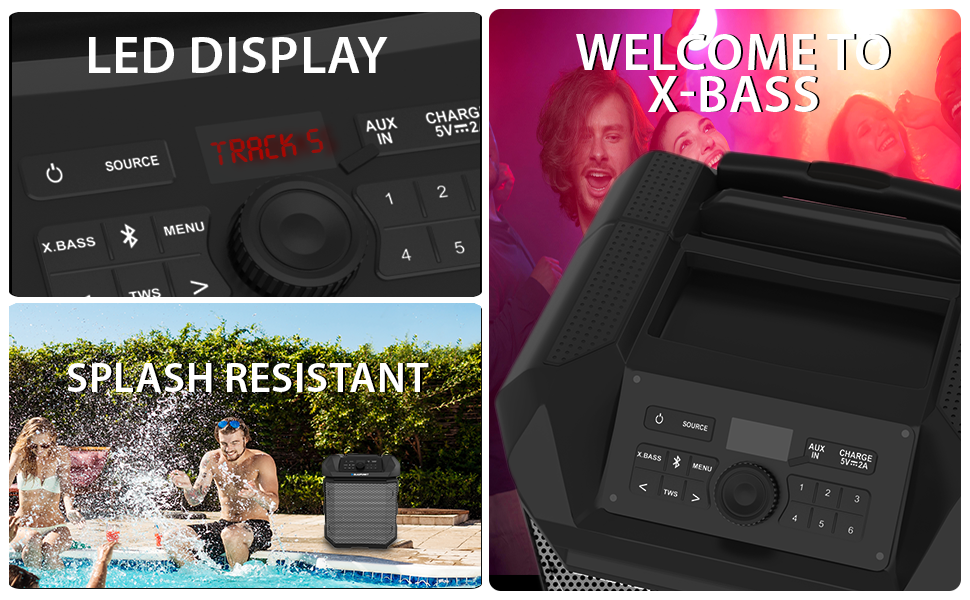 The Blaupunkt PS150 party speaker delivers powerful 100W audio with deep bass from an 8-inch woofer and clear highs from a 1-inch tweeter. X-Bass technology enhances low frequencies for immersive sound. Its angled design optimizes sound dispersion, and user-friendly controls simplify operation. Karaoke-ready with microphone input, it turns gatherings into parties. A 4500mAh battery provides up to 12 hours of playtime, making it a perfect audio companion for any occasion.