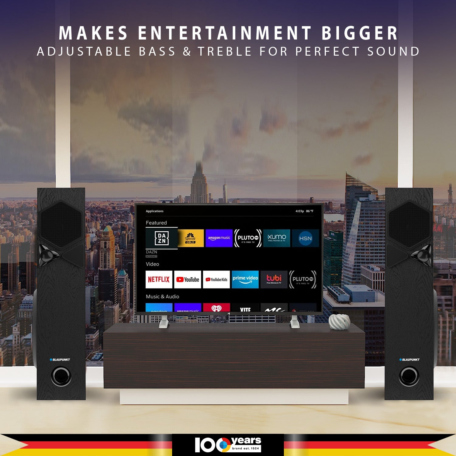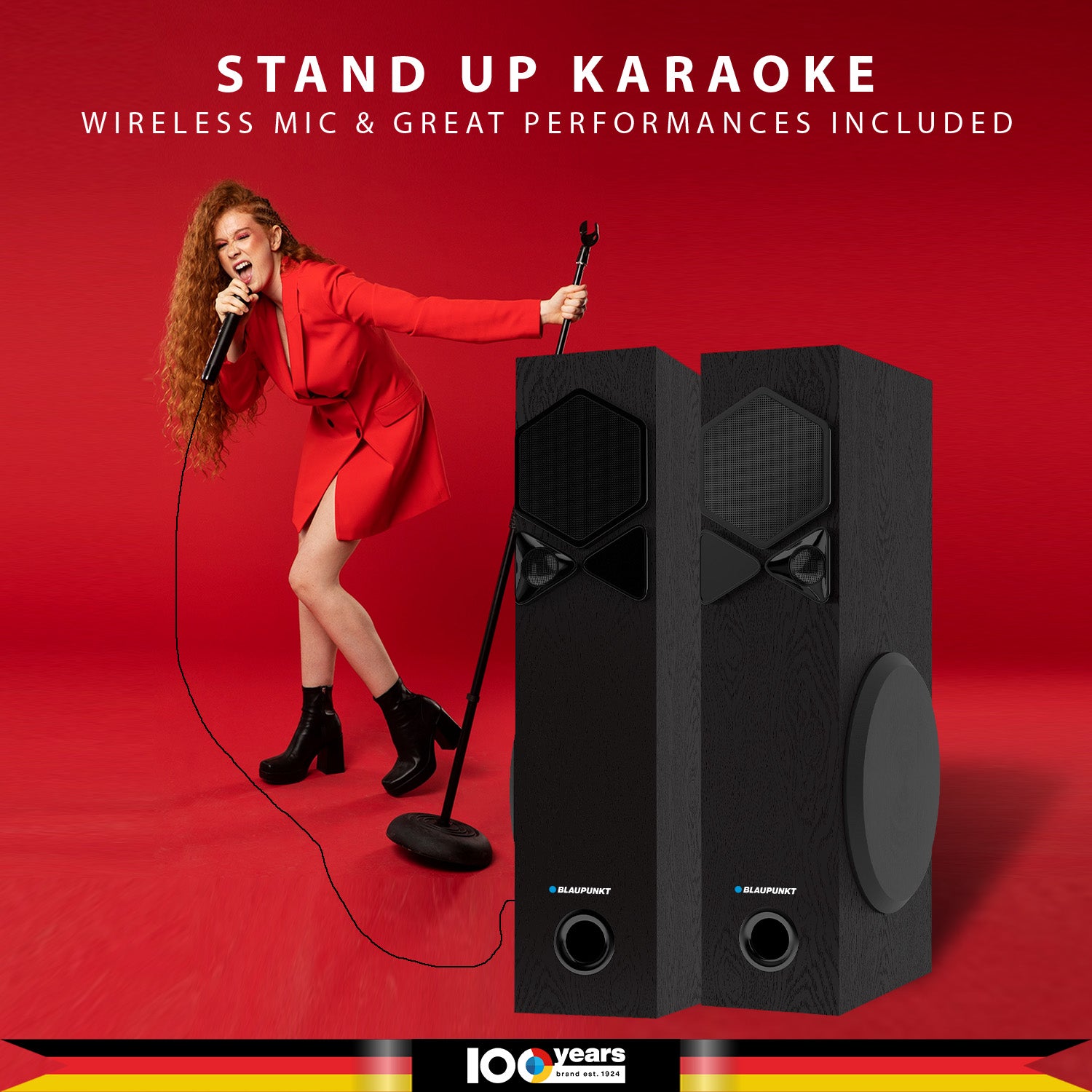 Blaupunkt ROCK & ROLL TSP Tower Speaker- Unleash the Power of Pure Sound. Turn up the energy with 160W RMS output and dual 8" subwoofers that deliver deep, room-shaking bass. Crisp highs flow through premium silk dome tweeters, while adjustable bass and treble controls let you fine-tune your vibe. Whether you're hosting a party or belting out karaoke hits, this wooden-built tower speaker brings rich acoustics and timeless style to any space.