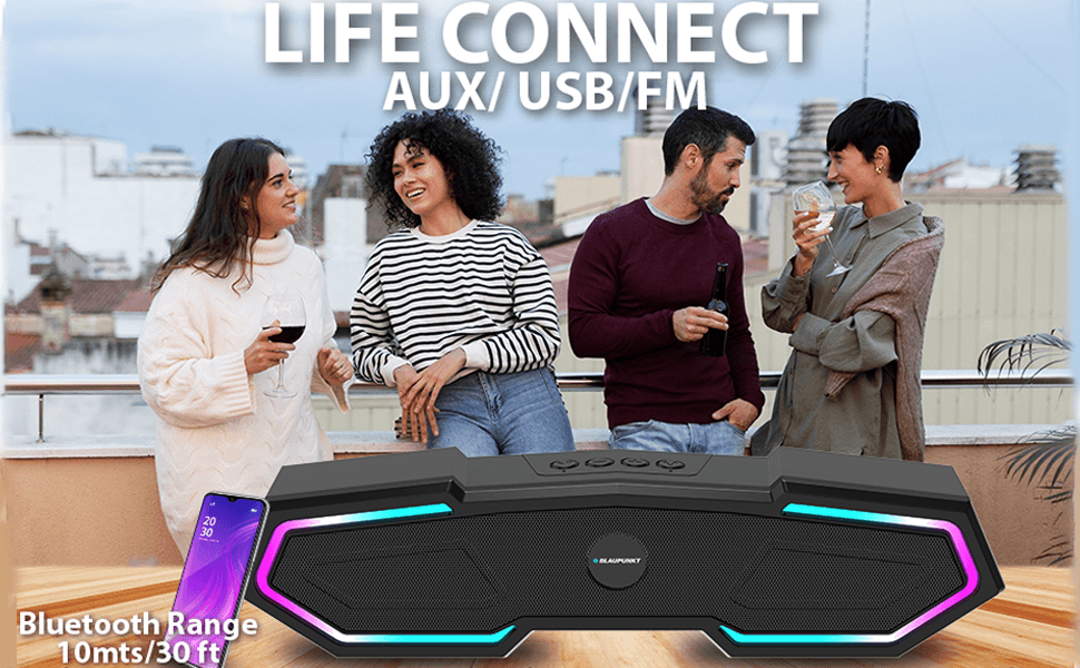 If you are looking for a top of the line standalone soundbar, then look no further than the new SBA15 Gaming. This compact BT speaker has it all. To start with, there are dual 2.5nch speakers. Together, they produce 16 Watts of thumping sound that is loaded with solid bass and crystal clear highs. Connect it with any of your devices, it comes with multiple connectivity options like Bluetooth, USB, AUX, TF, FM and TWS, so you can get your party going. The SBA15 Gaming is aimed at gamers who love their action fast and snappy. It has built in LED lights that change colour, pulse and throb. Linked to your gaming comp and your adventures rise to new levels. Honestly, it looks great when the lights are dimmed and the LEDs are working their magic. A built in battery means you can take it anywhere. The battery is super efficient, so you get hours of playtime. And charging is fast with Blaupunkt’s TurboVolt Tech. You can turn parties into Karaoke nights thanks to its MIC port. Now that has to be the coolest soundbar you can find out there