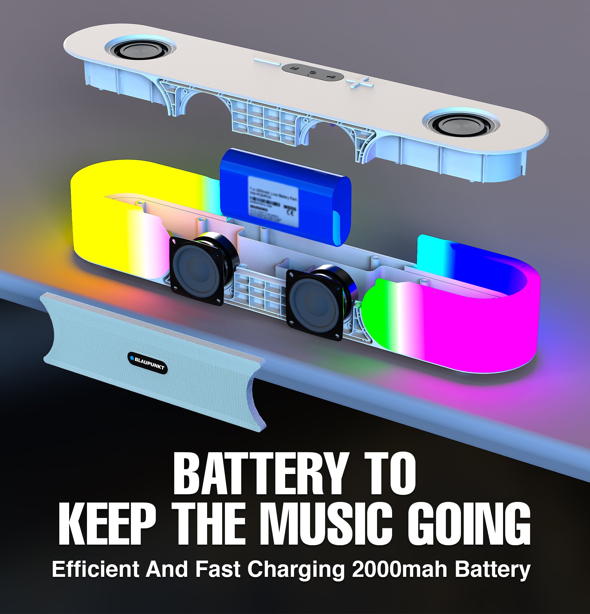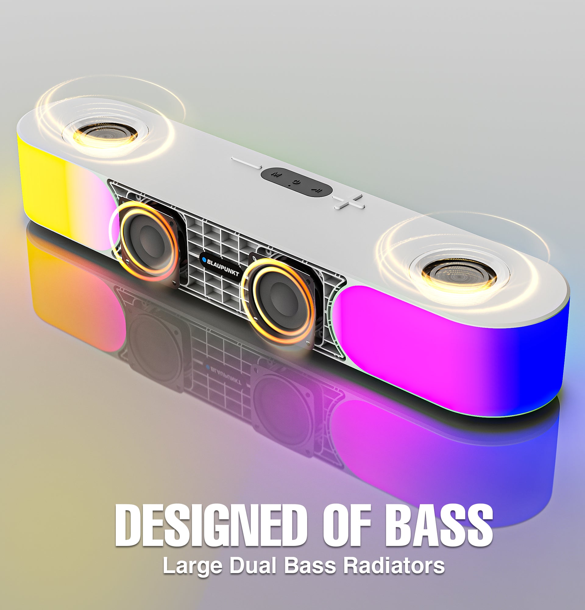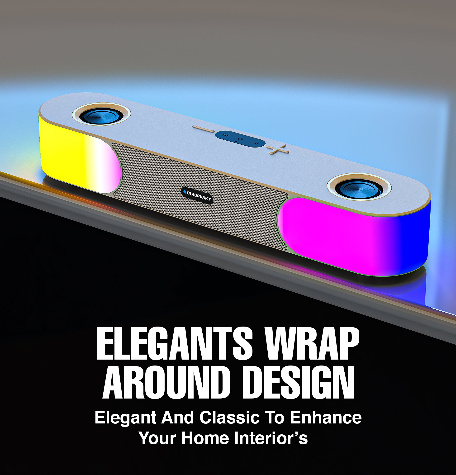 Elevate your audio experience with the Blaupunkt SBA20 VIBE—where German engineering meets immersive design. This 2025 launch soundbar delivers a powerful 30W output, enhanced by dual bass radiators that bring cinematic depth to every beat. Wrapped in a sleek, elegant silhouette, it features Liquid Wrap Around Ambient Lights that pulse with your vibe, transforming any space into a mood-driven soundscape. With seamless connectivity via Bluetooth, USB, and AUX, plus TWS pairing for stereo expansion, the SBA20 VIBE adapts to every setup. Enjoy extended playtime and rapid TurboVolt charging, so your rhythm never skips a beat. Designed for those who live loud and lounge in style.