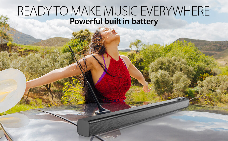 SBA50 45W Wireless Bluetooth Soundbar with Built-in Battery & Karaoke Mic