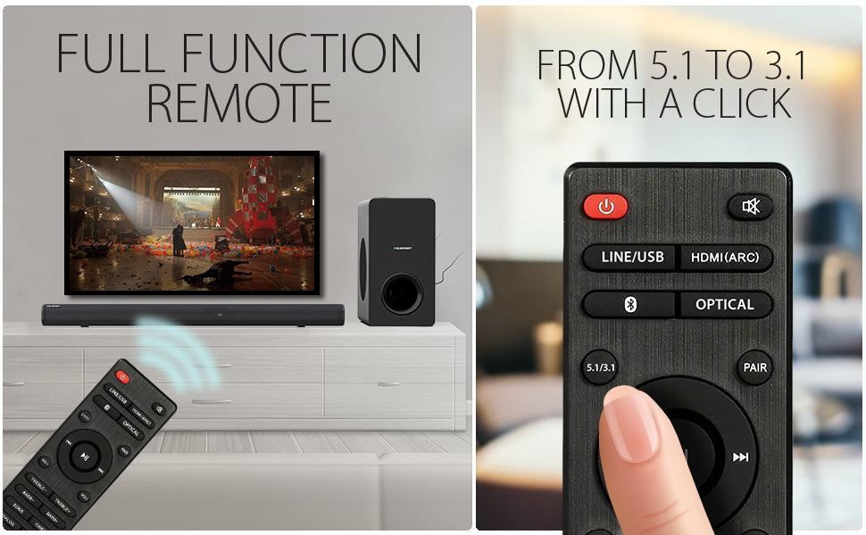 Blaupunkt is an iconic German brand that has developed cutting edge audio technology since 1924. Today this legendary Audio Tech German brand is available in India with a wide quality range of Audio Products. The big daddy of sound is here. This 5.1 system takes audio performance to the highest levels. Balanced sound separation, clean , crisp reproduction and a very synchronized audio output changes the way you will watch movies. No need for multiplexes now.